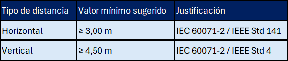 Estas distancias no solo son recomendables, sino técnicamente exigibles si se fundamentan en estudios de riesgo, condiciones ambientales y norma internacionales aplicables.